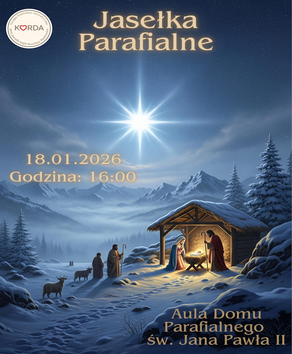 Grupa artystyczno-teatralna KORDA serdecznie zaprasza wszystkich Parafian oraz Gości na coroczne parafialne Jasełka, które odbędą się 18 stycznia 2026 r. o godz. 16.00 w auli Domu Parafialnego. Poprzez wspólne przeżycie[…]