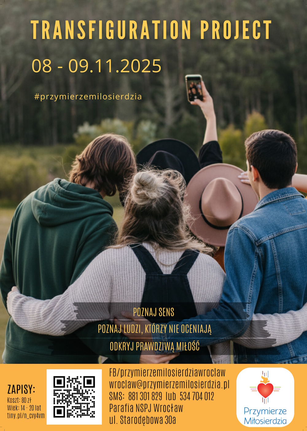 Wspólnota Przymierze Miłosierdzia serdecznie zaprasza na wyjątkowe warsztaty dla młodych „Transfiguration Project” (Projekt Przemiana), które odbędą się w dniach 8-9 listopada w parafii NSPJ Wrocław Pawłowice. Będzie to czas na wspólną modlitwę, zabawę i czas spędzony razem.